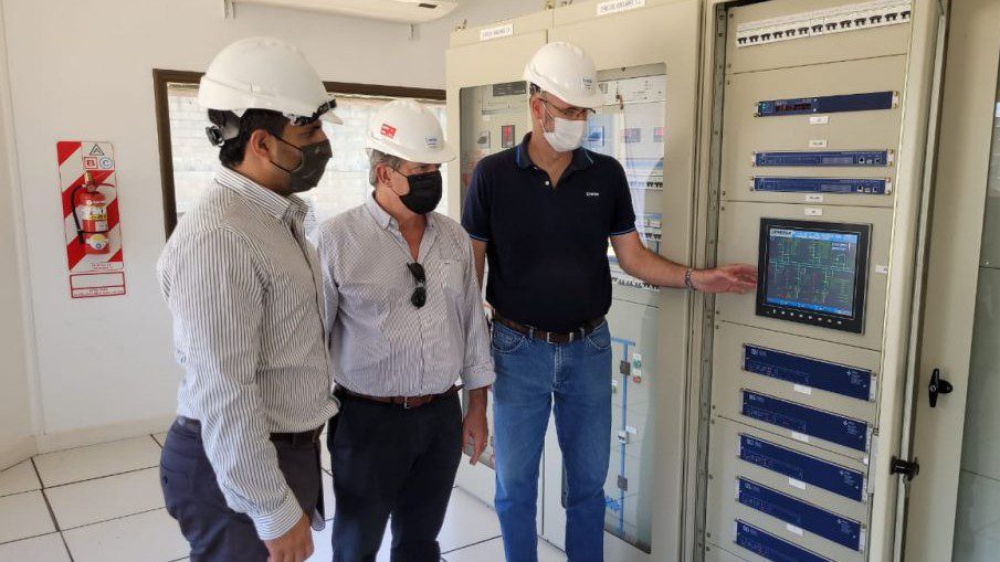 El de ENERSA presidente Ramiro Caminos y el director Guillermo Gianello, acompañados por el jefe de Mantenimiento de Transmisión Zona