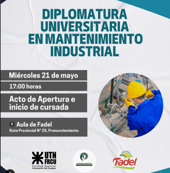 Este miércoles 21 de mayo comenzará la Diplomatura Universitaria en Mantenimiento Industrial, una iniciativa formativa desarrollada en conjunto por la Universidad Tecnológica