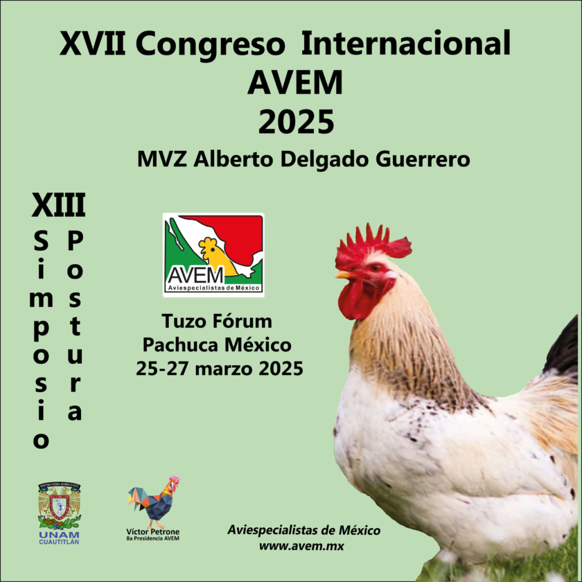 La Asociación Independiente de Directores y Gerentes de Producción de las Empresas Avícolas de México (AVEM) realizará su XVII Congreso Internacional AVEM 2025 del 25 al 27 de marzo en el Centro de Convenciones Tuzo Fórum, en Pachuca, México. El evento será presencial y estará dirigido por el MVZ Alberto Delgado Guerrero.