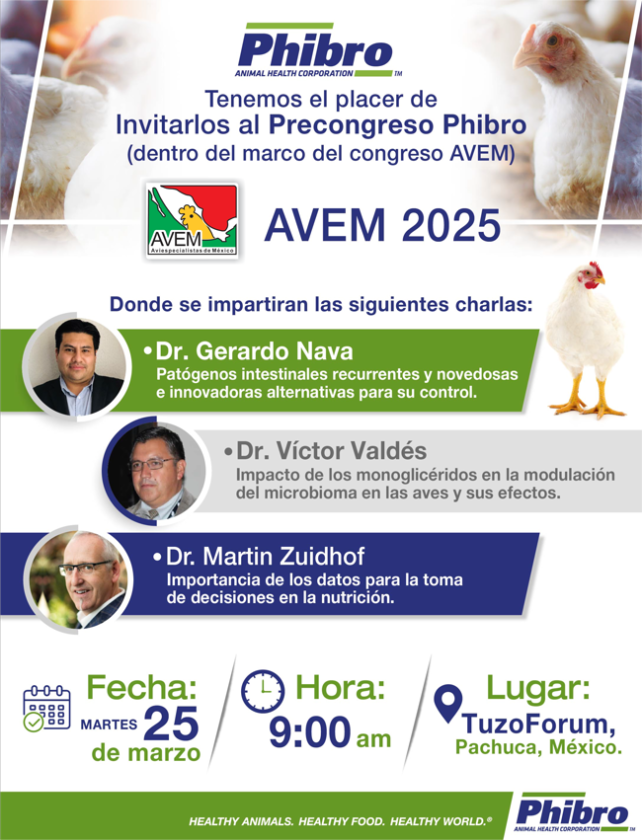 - 9:00 am: Desayuno organizado por Phibro Animal Health, con la participación de Alejandro Pelayo.